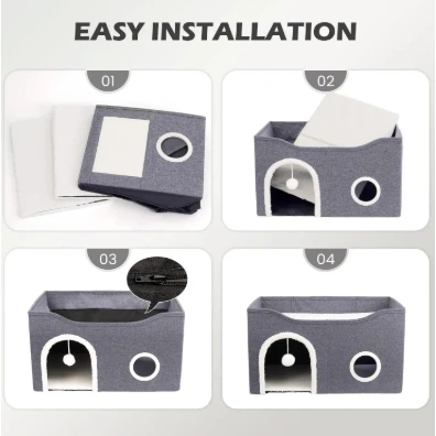 Esta casa para gatos é ideal para ambientes internos, como casas e condomínios. A cama interna pode ser rapidamente montada e dobrada em um formato plano para fácil armazenamento e transporte.